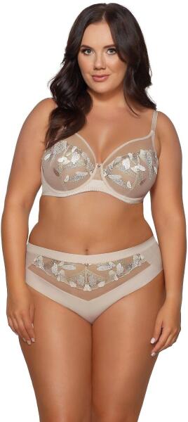 Női bugyi - oldalt kiemelve - mikroszálból és finom hálóból, fényes hímzéssel - a bugyi hátsó része tüllhálóval van befejezve Összetétel: 91% poliamid, 5% pamut, 4% elasztán
