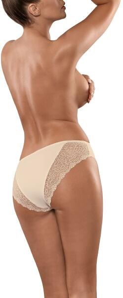 Finom elasztikus csipkével díszített, kényelmes szabású női bugyi. A kellemes anyag kényelmes viseletet biztosít. Anyaga: 80% poliamid, 20% elasztán