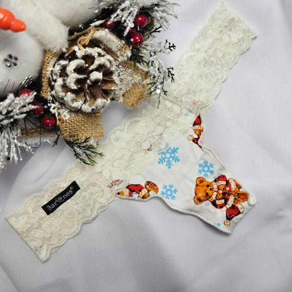 Mikulásos-Karácsonyi tanga ecru-maci mintás