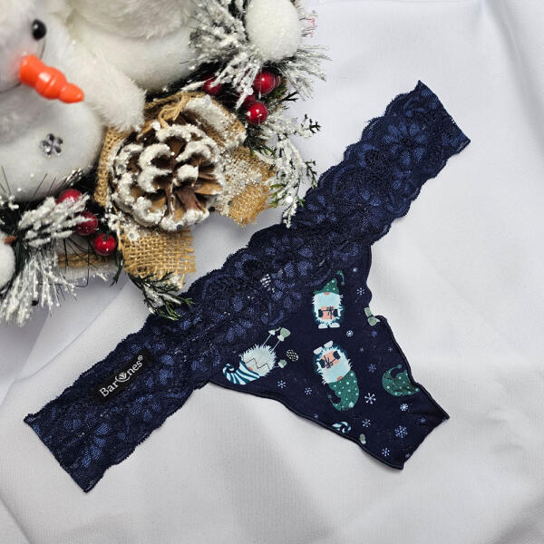 Barones Mikulásos-Karácsonyi tanga kék-manó mintás S 76225