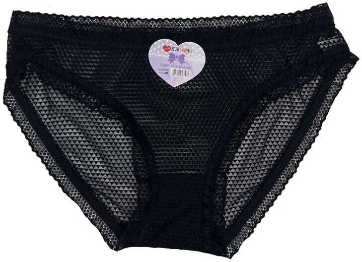 Női bugyi - mintás háló - klasszikus szabású - csipkeszalaggal díszítve - 2 db fekete műanyag zacskóba csomagolva Összetétel: 81% nylon, 19% spandex