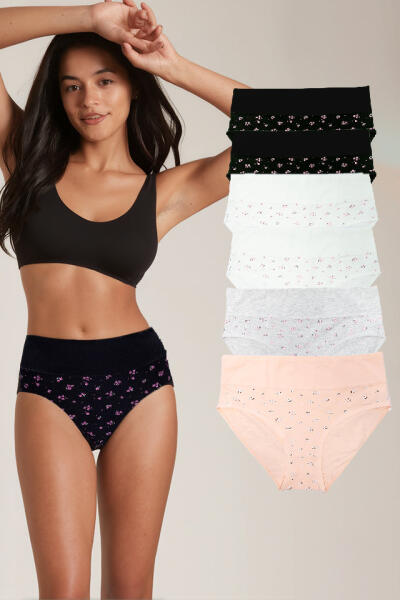 Női Pamut Alsónemű Szett - 6 Részes, Magas Derekú, Virágmintás