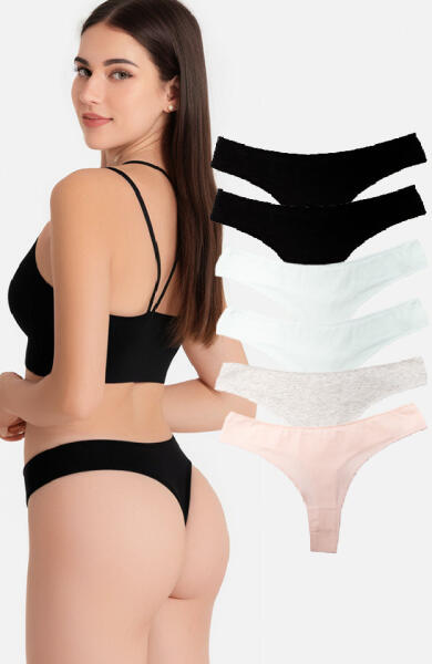 Dollcini Tanga Női Bugyi - 95% Pamut, Többszínű, 6 db-os Csomag - L (ZZC_3682_L)