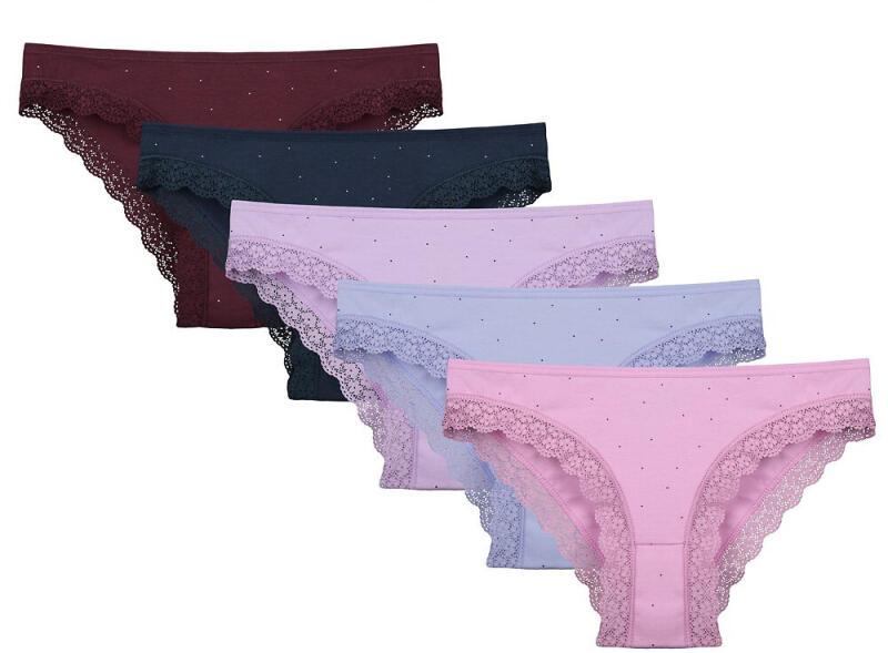 Női bugyi - finom pontozott mintával díszítve - csipkével díszített nadrág - két darabba csomagolva Összetétel: 95% pamut, 5% elasztán