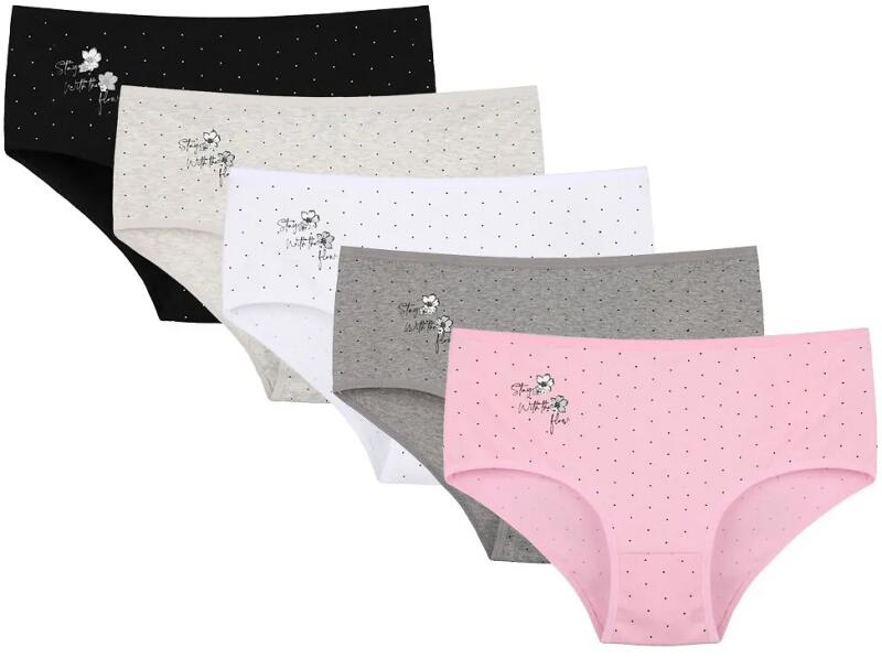 Női bugyik- mintás pamut- teljesen zárt vágás- elérhető színek: rózsaszín, fekete, sötétszürke, világosszürke, fehér- párosával csomagolva műanyag zacskóban, különböző kombinációkbanÖsszetétel: 95% pamut, 5% elasztán