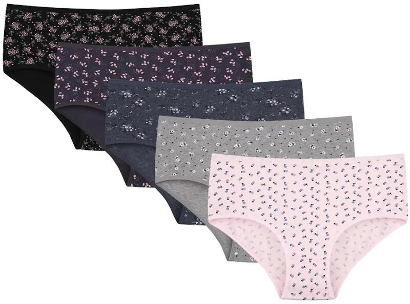 Női pamut bugyi- virágminta- teljesen zárt vágás- párosával csomagolva műanyag zacskóban, különböző színkombinációkban- elérhető színek: lila, világos rózsaszín, szürke, farmer, feketeÖsszetétel: 95% pamut, 5% elasztán