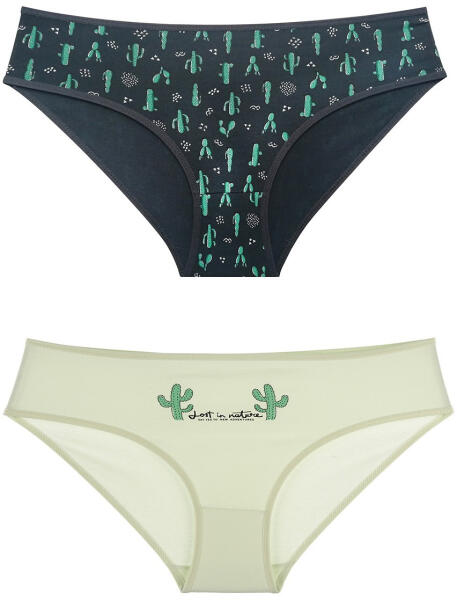 Női pamut bugyi Nyomtatással díszítve Klasszikus szabású Két darabba csomagolva Anyaga: 95% pamut, 5% elasztán