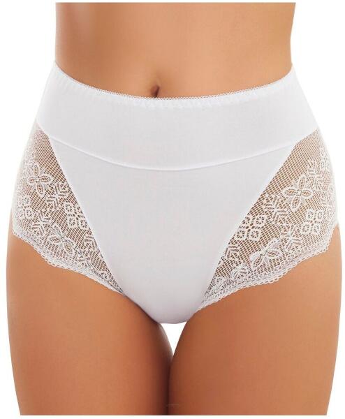 Női bugyi - magas derékvonal - hangsúlyos csípő - sima pamutból, áttört csipkével kombinálva Összetétel: 95% pamut, 5% elasztán