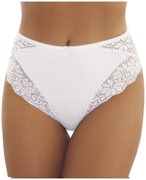 Női bugyik - magas derékvonal - hangsúlyos csípő - sima pamutból készült, áttört csipkével kombinálva Összetétel: 92% pamut, 8% elasztán; csipke 88% poliamid, 12% elasztán