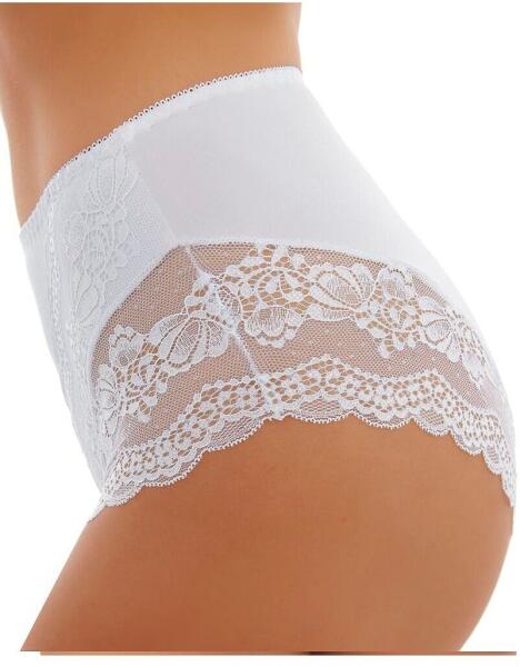Pamut női bugyi - magas derékvonal, megerősített csípő - elülső rész és csipkével díszített bugyi virágmotívummal Összetétel: 92% pamut, 8% elasztán; csipke 54,7% nylon, 27,9% poliészter, 17,4% spandex