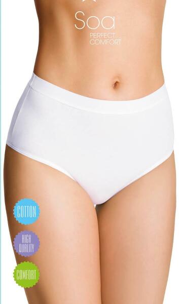 Klasszikus szabású pamut női bugyi . A kellemes anyag kényelmes viseletet biztosít. Megerősített pamut lépésbetét. Dobozba csomagolva. Anyaga: 92% pamut, 8% elasztán