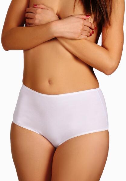Kellemes kötésből készült női pamutbugyi magasabb derékkal. A csomag 2 db bugyit tartalmaz . Anyaga: 95% pamut, 5% elasztán