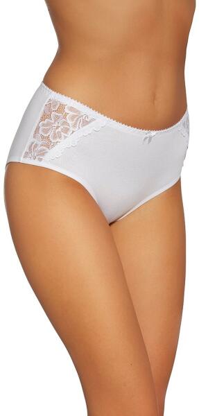 Női bugyi kiváló minőségű pamutból, elasztán hozzáadásával, oldalán finom virágos csipke betétekkel. Tökéletesen illeszkednek a testhez, és kényelemérzetet adnak. Anyaga: 95% pamut, 5% elasztán
