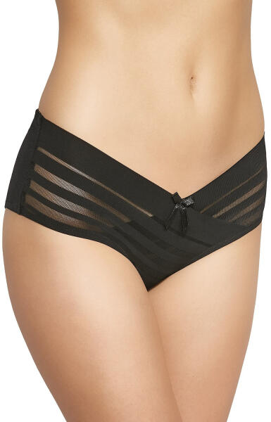 Női bugyi Finom anyagból készült elülső rész átlátszó csíkokkal Lapos kivitelű öv Pamut hátoldal függőleges varrással Összetétel: 95% pamut, 5% elasztán