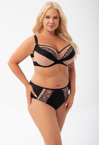 Női bugyi - magas vágás - mikroszálas anyagból készült - elöl hímzéssel díszített tüll betétek - a hátsó része sima, a felső vonalban háromszög alakú tüllbetét található Összetétel: 90% poliamid, 7% elasztán, 3% poliészter