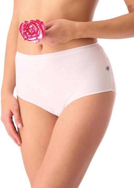 Női bugyik - magas dekoltázs szélesebb csípővel - kiváló minőségű pamutból készült - hátul csipkebetétekkel díszített - lapos, rugalmas derékpánt - két darabos dobozban csomagolva Összetétel: 95% pamut, 5% elasztán
