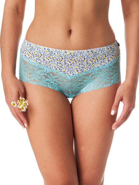 Női brazil bugyi Csökkentett derék Kiváló minőségű mintás pamutból és csipkéből Két darabba csomagolva Anyaga: 95% pamut, 5% elasztán