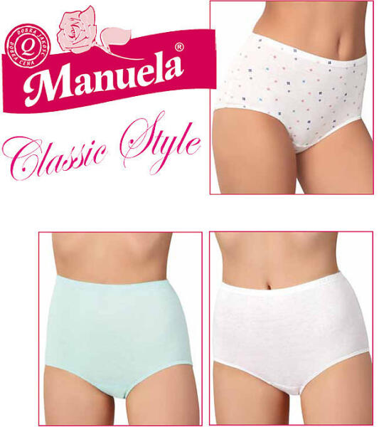 Kényelmes női bugyi kiváló minőségű pamutból, magas derékkal. Hat darab műanyag zacskóba csomagolva: - (rózsaszín, sárgabarack, sárga, kék, szeladon, bézs) - fehér virágokkal - Fehér - fekete