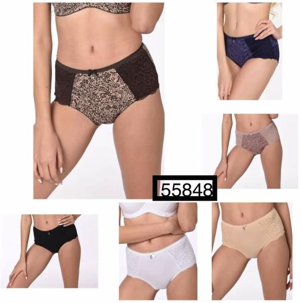 Női széles oldalú pamut-csipke alsó (magas állású)