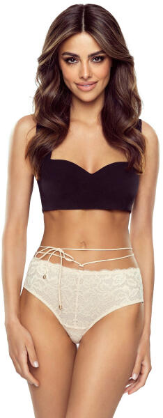 Női bugyi - finom csipkéből, virágmintával - belső oldalán bézs színű elasztikus háló - a derékrészben dekorcsíkok a hatékony kötéshez (a csíkok lecsatolhatók). - könnyedség és kényelem érzést nyújt - dobozba csomagolva Összetétel: 75% poliamid, 25% elasztán