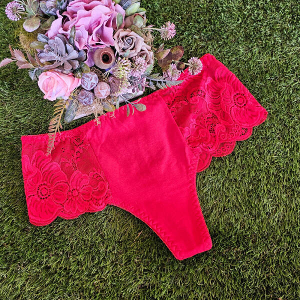 Lemila Magas derekú csipkés pamut tanga Piros, M 98159