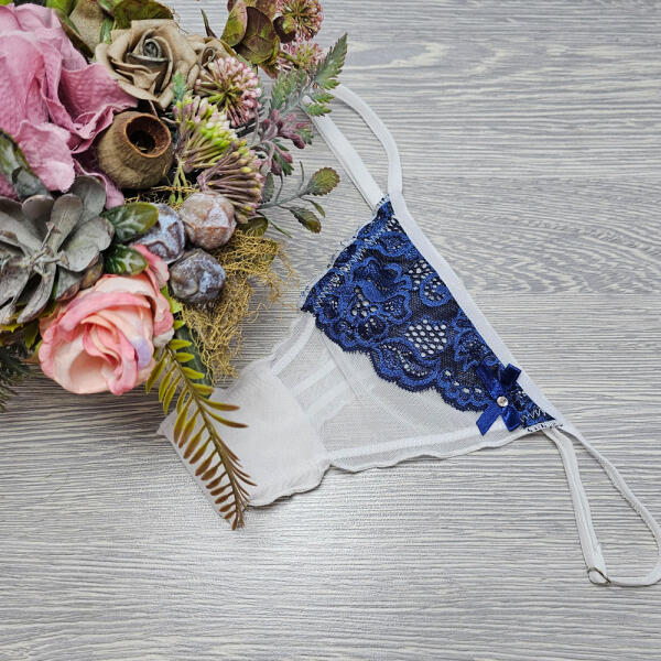 Lucifer állítható pántos tüll-csipke TANGA Kék 80589