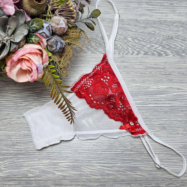 Lucifer állítható pántos tüll-csipke TANGA Piros 80591