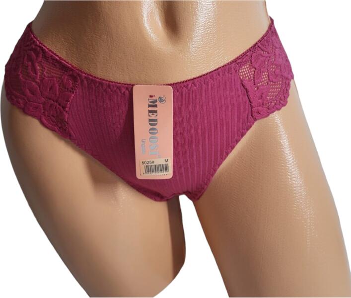 Női pamut  tanga oldalt csipkével, bordázattal ellátva. Visszafogott de mégis minden szemet elkápráztat. Probáld ki, hogy te is érezd a csábos kényelmet.   Méretek: S-M-L. Termékeink színe eltérhet a képen láthatótól a valóságban.