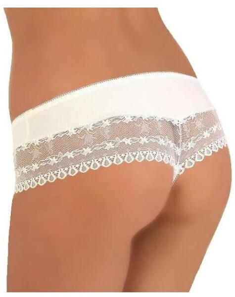 Brazil szabású női bugyi - sima pamutból készült - oldalán és hátulján szemet gyönyörködtető virágos csipke Összetétel: 95% pamut, 5% elasztán