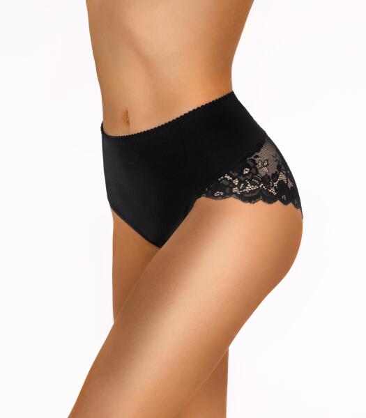Minőségi, lenyűgöző csipkéből készült női bugyi virágmotívummal. Szatén masnikkal díszített öv. Anyaga: 85% poliamid, 15% elasztán