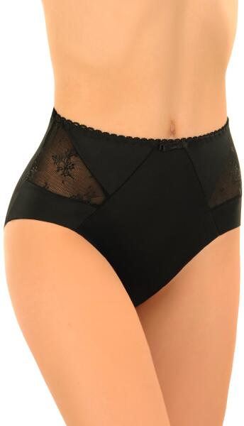 Finom mikroszálas magas női bugyi. Elülső oldala finom csipkebetétekkel díszített. A bugyi lézerrel vágott, ruha alatt nem látszik. Anyaga: 85% poliamid, 15% elasztán