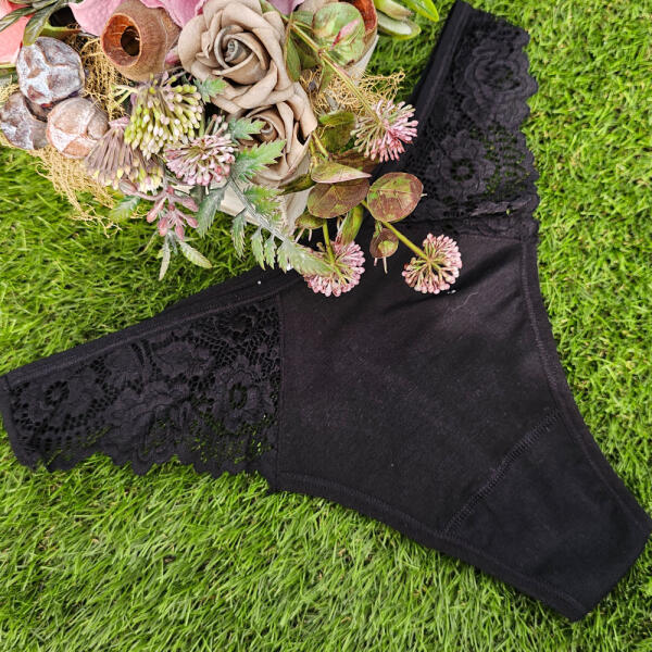 MST Női csipkés pamut tanga Fekete, L/XL 99147