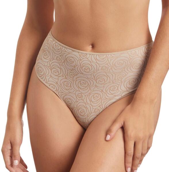 Női bugyik - magas, klasszikus szabású - mikroszálas anyagból készült, jacquard virágmintával díszítve - puha szegély a lábakon és a derékon - enyhén megemelt csípő - sima mikroszálas anyagból készült hátrész Összetétel: 85% poliamid, 15% elasztán