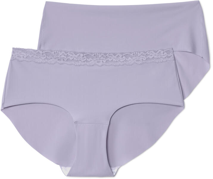2 magas derekú alsó, Magic Cut, lila Szín: Világoslila Anyag: 75% poliamid, 25% elasztán Csipke: 93% poliamid, 7% elasztán Különösen lapos szegélyek – nem tűnik át a ruha alattKülönösen könnyű microtouch anyag – alig érezhető, nagyon kényelmes viseletTartós és a mosást rendkívül jól tűrő, kiváló minőségű, márkás elasztánnalPamut lépésbetét1x finom csipkével a derékrészen, 1x csipke nélkül