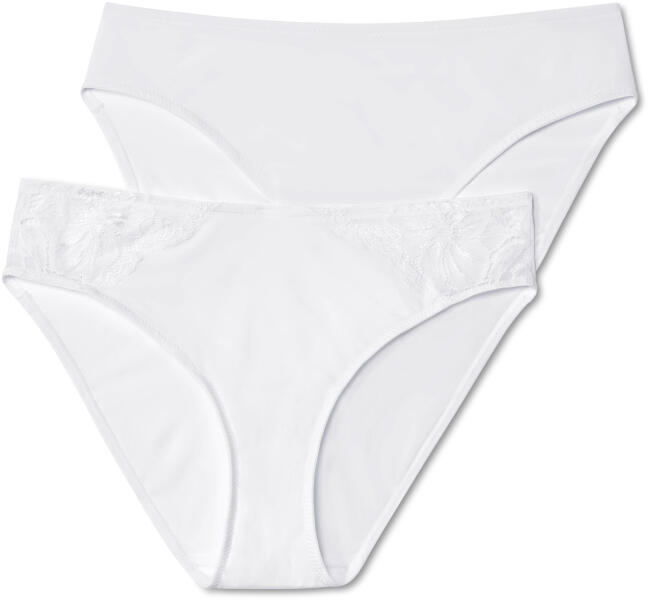 2 női alsó, microtouch, csipkés, fehér Szín: Fehér Anyag: 91% poliamid, 9% elasztán Csipke: 89% poliamid, 11% elasztán Puha microtouch anyag1x finom csipkével, 1x csipke nélkülKiváló minőségű márkás elasztánnal, tartós és rendkívül mosásállóPamut lépésbetét