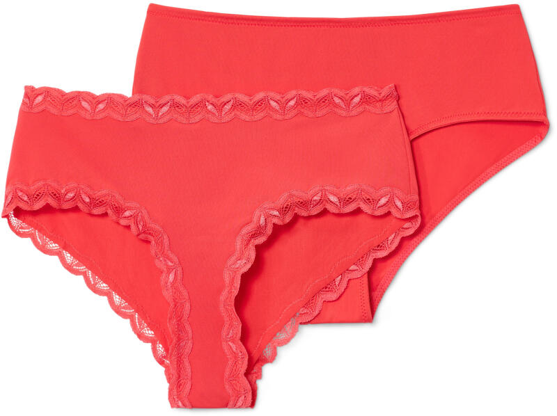 2 női hipster alsó, piros Szín: 2 x piros Anyag: 91% poliamid, 9% elasztán Csipke: 85% poliamid, 15% elasztán Puha microtouch anyag1x finom csipkével, 1x csipke nélkülKiváló minőségű márkás elasztánnal, a tartósság és a mosásállóság érdekében Pamut lépésbetét