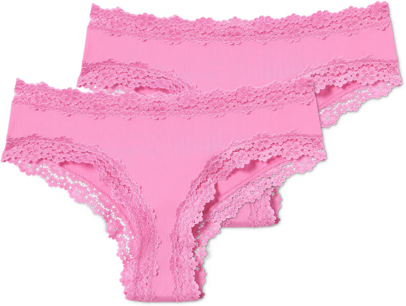2 női hipster alsó szettben, csipkés, pink Szín: Pink Anyag: 91% poliamid, 9% elasztán Csipke: 85% poliamid, 15% elasztán Puha microtouch anyagFinom csipkeTartós és a mosást rendkívül jól tűrő, kiváló minőségű, márkás elasztánnalPamut lépésbetét