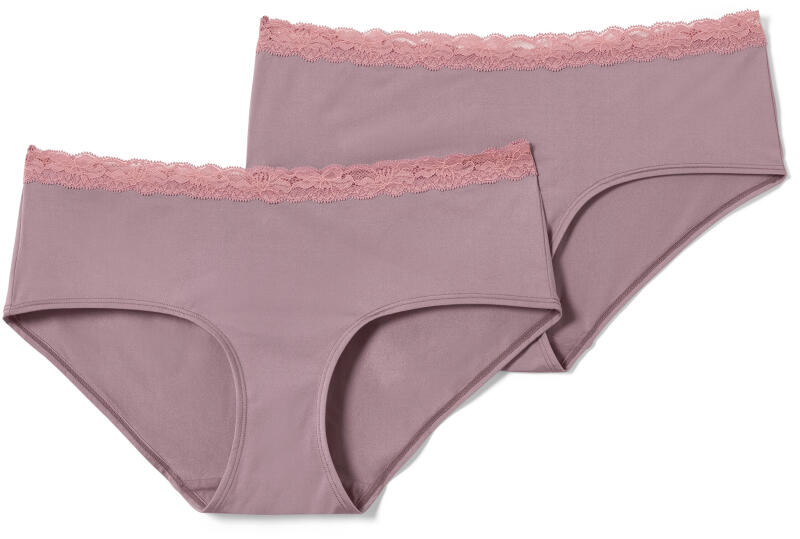 2 női magas derekú alsó, mályva Szín: Rózsaszín Anyag: 83% poliamid, 17% elasztán Csipke: 66% poliamid, 25% viszkóz, 9% elasztán Puha microtouch anyagFinom csipkévelTartós és a mosást rendkívül jól tűrő, kiváló minőségű, márkás elasztánnalPamut lépésbetét