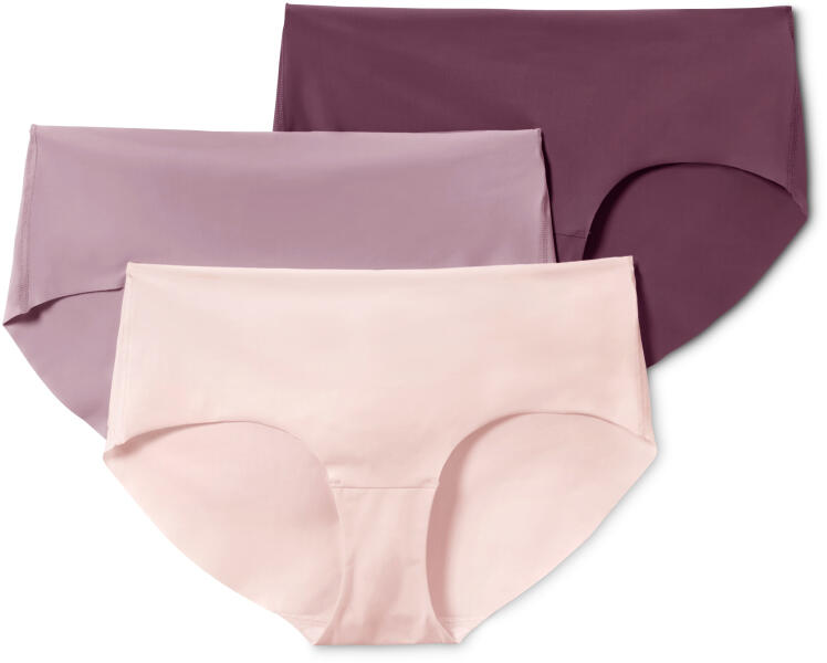 3 db női magas derekú Magic Cut alsó Szín: 1x rózsaszín, 1x máyva, 1x padlizsán Anyag: 75% poliamid, 25% elasztán Különösen lapos szegélyek – nem tűnik át a ruha alattKülönösen könnyű microtouch anyagól – alig érezhető a nagyon kényelmes viselet érdekébenTartós és a mosást rendkívül jól tűrő, kiváló minőségű, márkás elasztánnalPamut lépésbetét