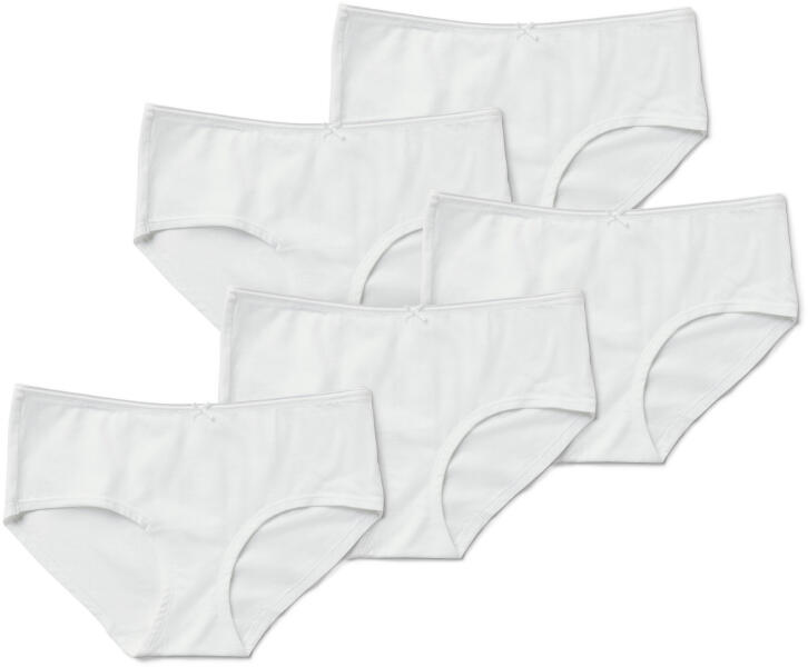 5 db női magasderekú alsó, fehér Szín: 5x fehér Anyag: 95% pamut, 5% elasztán Női alsók kellemesen puha pamut-sztreccs anyagbólTartós és rendkívül mosásálló, kiváló minőségű, márkás elasztánnalPamut lépésbetétTartós pamuttalGOTS organic – konverziós anyagokból, CU 809415 tanúsítottEzek az alsók elősegítik a fenntartható gyapottermesztést.
