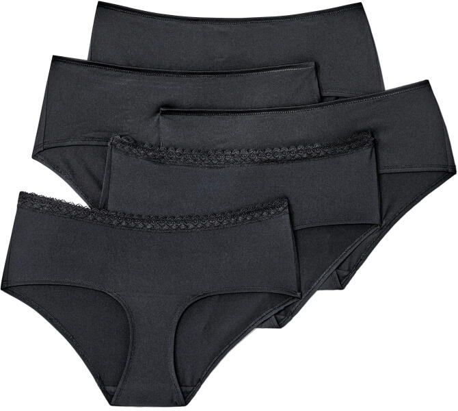 5 db női magasderekú alsó, microtouch, csipkés, fekete Szín: 5x fekete Anyag: 91% poliamid, 9% elasztán Csipke: 92% poliamid, 8% elasztán Puha microtouch anyag2x puha csipkével a derékrészen, 3x csipke nélkülKiváló minőségű márkás elasztánnal, a tartósság és a mosásállóság érdekébenPamut lépésbetéttel