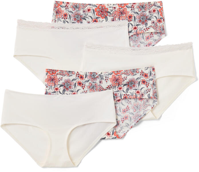 5 női magas derekú alsó, microtouch, virágos, krém Szín: 3x krémszínű, 2x krémszínű, nyomott virágmintás Anyag: 91% poliamid, 9% elasztán Csipke: 92% poliamid, 8% elasztán Puha microtouch anyag2x finom csipkével a derékpánton, 3x csipke nélkülKiváló minőségű márkás elasztánnal, tartós és rendkívül mosásállóPamut lépésbetét