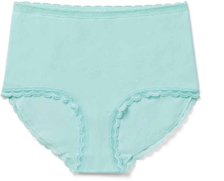 Magasderekú alsó, enyhén alakformáló Szín: Vízkék Anyag: 93% pamut (ökológiai gazdálkodásból), 7% elasztán Csipke: 87% poliamid, 13% elasztán Bélés: 85% poliamid, 15% elasztán A has területén enyhén alakformáló anyagEnyhe megtámasztásFinom csipkével a derékpánton és a lábkivágásoknálKiváló minőségű márkás elasztánnal, a tartósság és a mosásállóság érdekébenPamut lépésbetétEz az alsó kíméli a vízkészleteket.