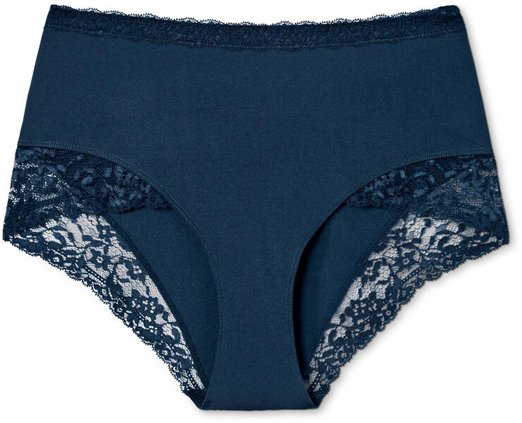 Női magas derekú alsó, alakformáló, csipkés, sötétkék Szín: Sötétkék Anyag: 83% poliamid, 17% elasztán Csipkegallon: 89% poliamid, 11% elasztán Bélés: 85% poliamid, 15% elasztán Csipke trim: 91% poliamid, 9% elasztán A has területén enyhén alakformáló anyag finom csipkerátéttelMagas szabású derékrésszel az enyhén alakformáló hatásértMagas derekú alsó finom csipkévelPuha microtouch anyagTartós és a mosást rendkívül jól tűrő, kiváló minőségű, márkás elasztánnalPamut lépésbetét