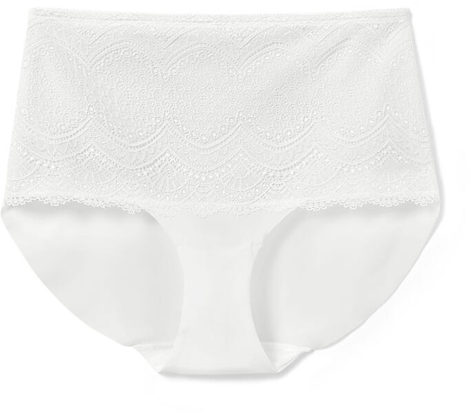 Női magas derekú alsó, alakformáló, csipkés, fehér Szín: Fehér Anyag: 74% poliamid, 26% elasztán Csipke: 83% poliamid, 17% elasztán Bélés: 85% poliamid, 15% elasztán A has területén enyhén alakformáló anyag finom csipkerátéttelMagas szabású derékrésszel az enyhén alakformáló hatásértKülönösen lapos eldolgozás a lábaknál – nem tűnik át a ruha alattNői alsó puha microtouch anyagbólTartós és a mosást rendkívül jól tűrő, kiváló minőségű, márkás elasztánnalPamut lépésbetéttel