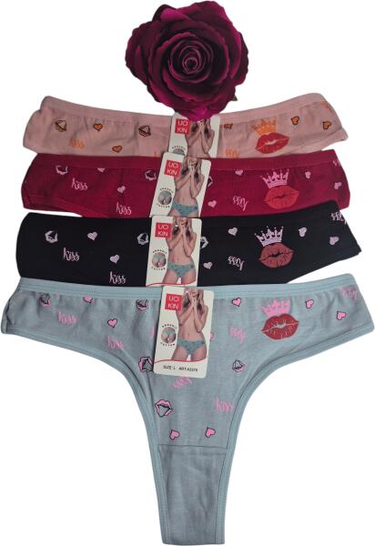 Női pamut tanga, Kiss mintával. Egy csomagban több db van, különböző színűek. Visszafogott de mégis minden szemet elkápráztat. Probáld ki, hogy te is érezd a csábos kényelmet. Termékeink színe eltérhet a képen láthatótól a valóságban.