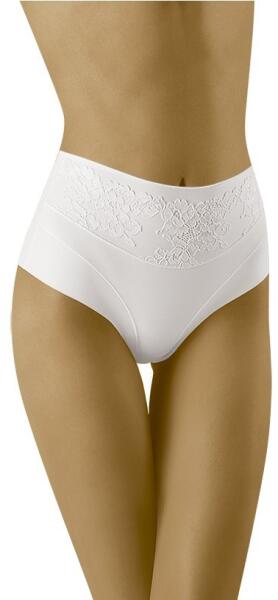 Női bugyi magas derékkal, oldalt erősítéssel. A bugyi szabása biztosítja a has és a csípő feszesebb megjelenését. Az anyag elülső oldala csipkével díszített. Lézerrel vágott alsó rész. Anyaga: 58% poliamid, 42% elasztán